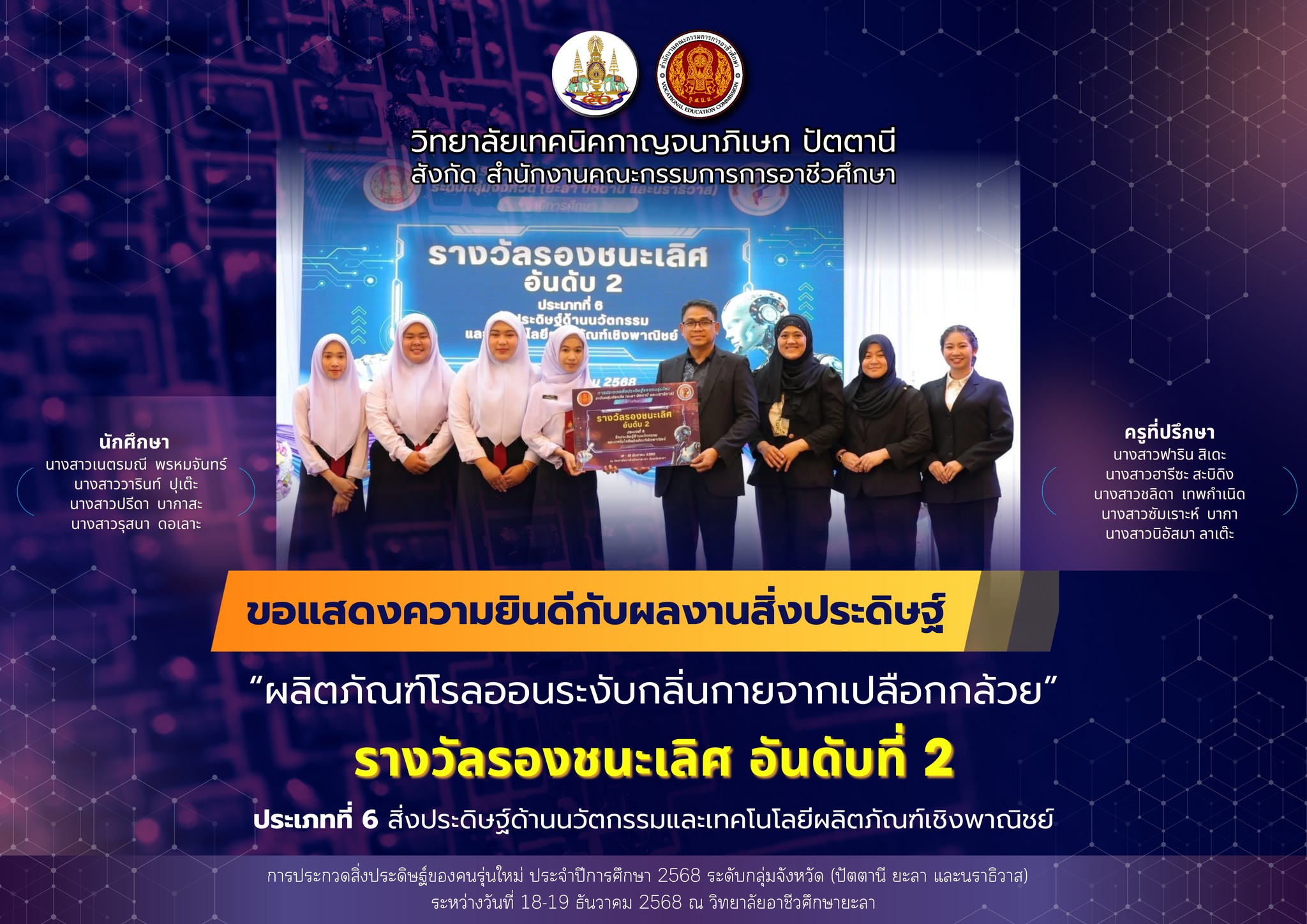 วิทยาลัยเทคนิคกาญจนาภิเษก ปัตตานี ดำเนินโครงการเข้าค่ายพักแรมลูกเสือวิสามัญ 2 ภาคเรียนที่ 2 ปีการศึกษา 2567 ระหว่างวันที่ 26 - 28 กุมภาพันธ์ 2568 โดยมีคณะผู้บริหาร ผู้กำกับลูกเสือวิสามัญ และลูกเสือวิสามัญ เข้าร่วมกิจกรรม ณ ค่ายลูกเสือชั่วคราว วิทยาลัยเทคนิคกาญจนาภิเษก ปัตตานี
